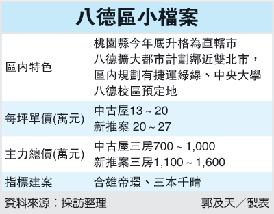 看好理由:桃園縣將于今年底正式升格為直轄市成為第六都,桃園縣八德擴大都市計畫區因鄰近雙北市,且區內規劃有捷運綠線、中央大學八德校區預定地,話題不斷,也為區域房市加溫。