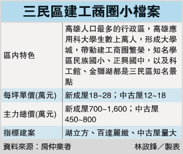 看好理由:三民區(qū)人口數(shù)多,以高雄車站為中心的交通,將腹地擴(kuò)大到屏東以及臺南,未來高雄鐵路地下化之后,地面將全部綠化,對三民區(qū)的發(fā)展具有加分的正面助益。尤其區(qū)內(nèi)金獅湖等風(fēng)景區(qū),在開放陸客觀光后,吸引不少大陸游客前來,對于區(qū)域的地方經(jīng)濟(jì)繁榮有一定貢獻(xiàn),同時帶動房地產(chǎn)能見度走高。