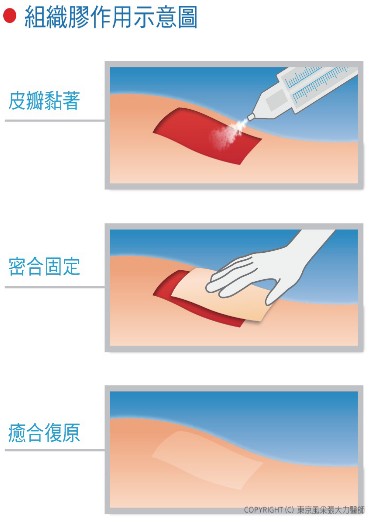 最新一代組織膠,主成分是人體的纖維蛋白原及凝血酶,本身具有良好的黏合力量,使用后數(shù)分鐘內,就會形成生理性纖維蛋白架構,強而有力的黏著皮瓣,能幫助受傷組織修復。施用在人體上,數(shù)日后將由身體自行吸收,不會造成排斥等不良影響。