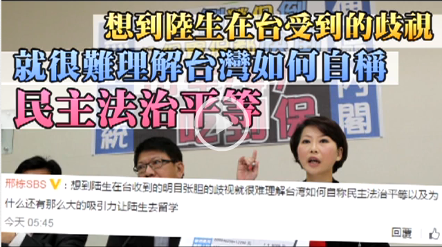 文大戲劇系陸生王樂水說,有聽到傳言說陸生來臺(tái)可能加嚴(yán),想來就讀的學(xué)弟妹都有點(diǎn)擔(dān)心。閩南師范大學(xué)、臺(tái)師大的陳姓交換生說,大陸不應(yīng)把政治和教育混為一談。