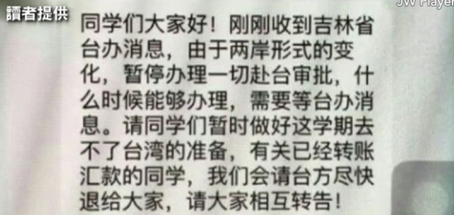 還有傳言說,吉林省臺(tái)辦已下令暫停辦理陸生赴臺(tái)的審理、批準(zhǔn)作業(yè)。