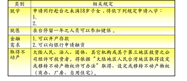 大陸資本赴臺投資配套措施就學、就醫、金融需求、取得不動產。